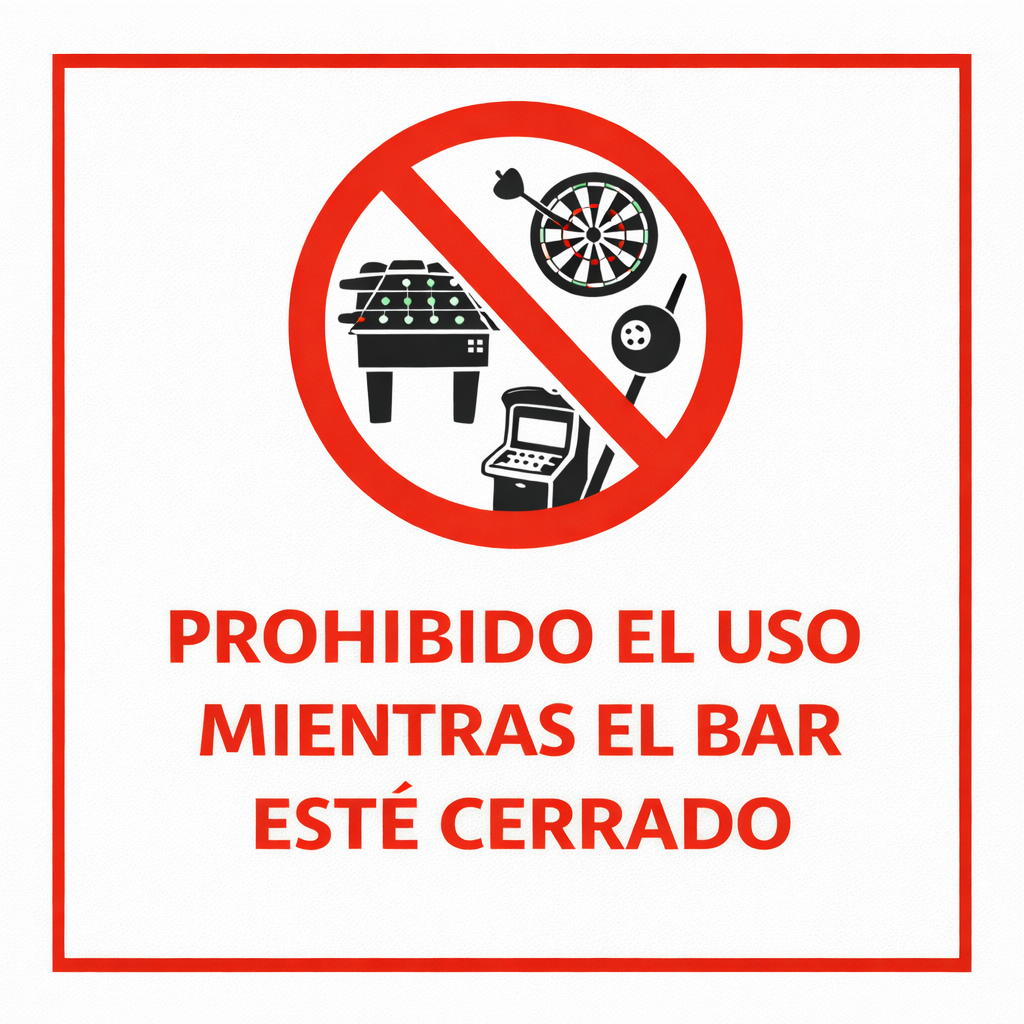 Queda terminantemente prohibido su uso cuando el bar se encuentre cerrado, por cualquier motivo, sin excepción alguna.